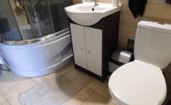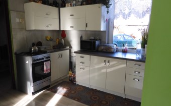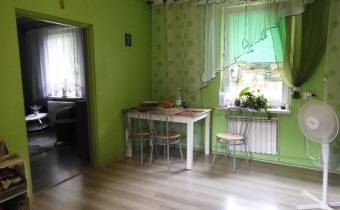 W domu mamy duży przedpokój z olbrzymią szafą wnękową, z przedpokoju wejście do łazienki i przechodniej kuchni, z kuchni wejście do pokoju. Mieszkanie bardzo zadbane, łazienka z kabiną prysznicową, glazura z nowych wzorów. Kuchnia widna, okna od strony zach. i wsch. Z kuchni jest wejście do dużego pokoju i kotłowni.