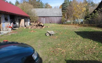 na działce o pow. 3985m. Działka od ulicy 24 m szeroka, ładnie położona, przy drodze asfaltowej Przyborów-Bałtów. W części za stodołą porośnięta lasem.