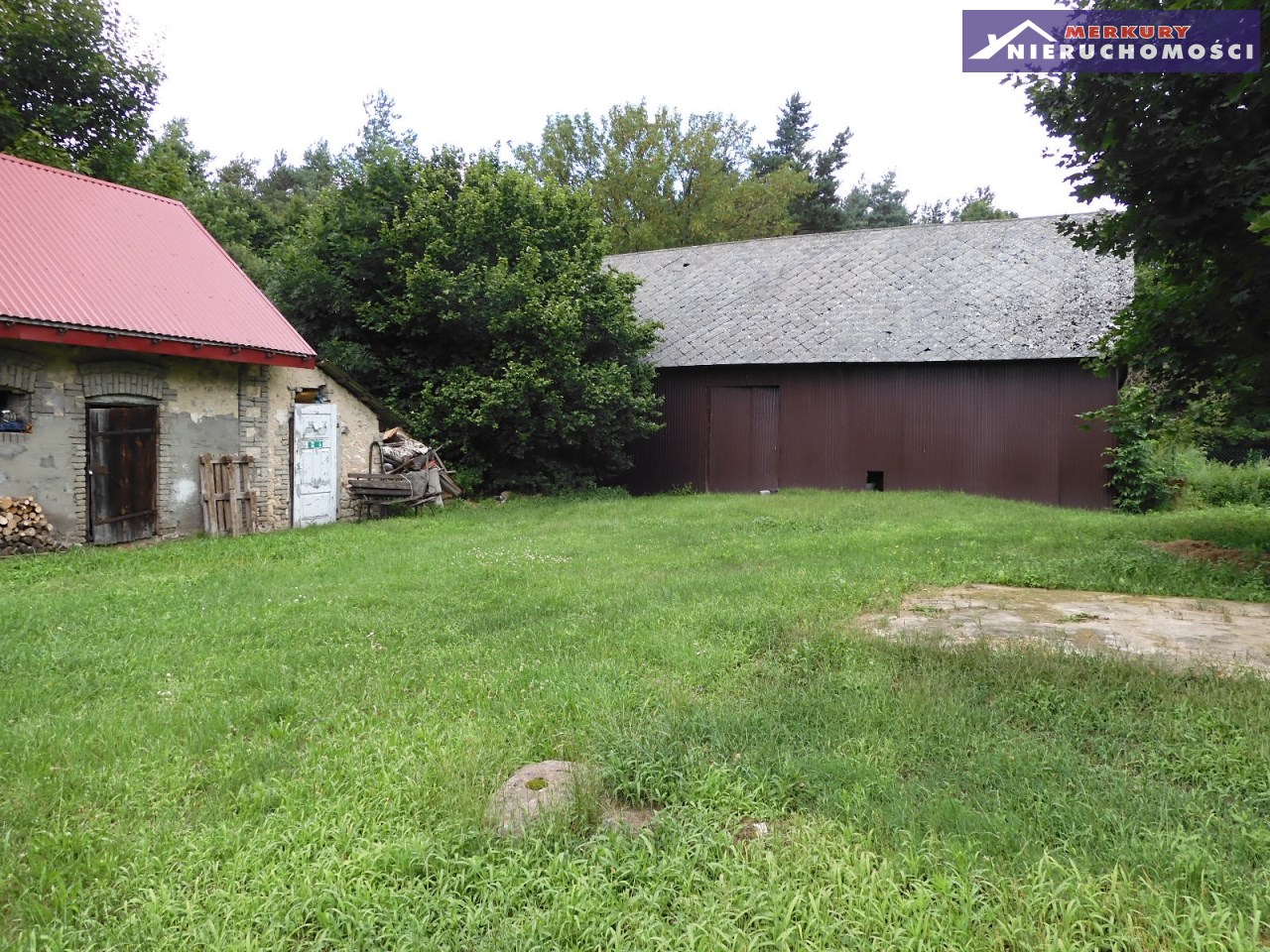 mały, parterowy dom, z budynkami gospodarczymi w miejscowości Lemierze, gmina Bałtów.