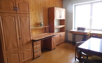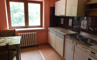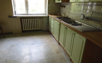 Mieszkanie wewnątrz wymaga odświeżenia ewentualnie remontu, materiały wykończeniowe lata 80-te. W mieszkaniu mamy dwie kuchnie, dwie duże łazienki. Mieszkanie przygotowane do remontu, oczyszczone z mebli w pokojach, pozostała zabudowa kuchenna.