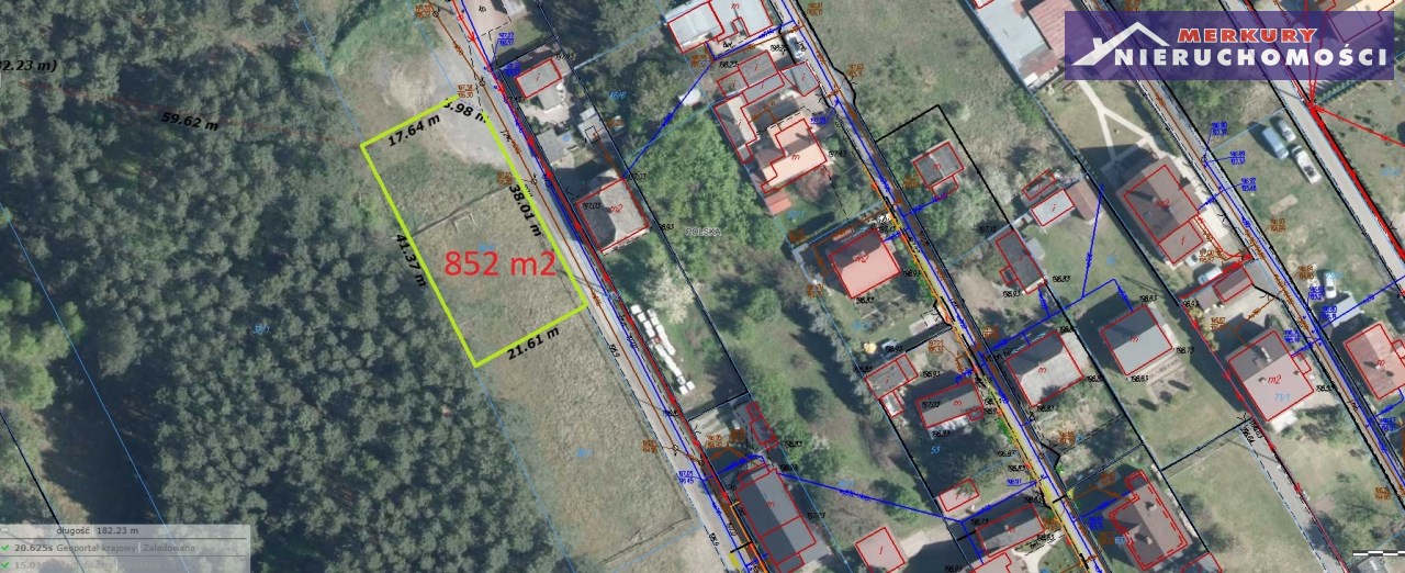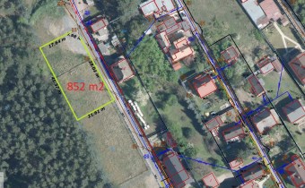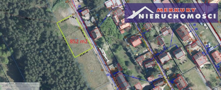 - Działka o pow.852 m2 nr ewidencyjny 38/8 obręb 21, kształt zbliżony do prostokąta (ścięty róg), o wymiarach ok. 41m szeroka x 21m. Działka z dostępem do drogi ziemnej, utwardzonej 41m..