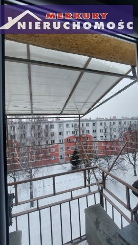 Mieszkanie o wystawie zachodniej - dwa pokoje, przedpokój, kuchnia, łazienka z WC. Duży pokój z balkonem z widokiem na zieleń osiedlową.