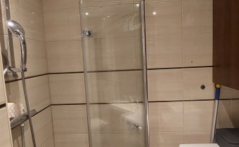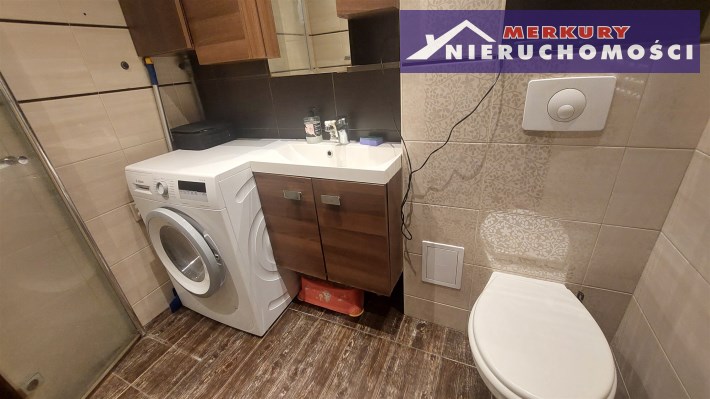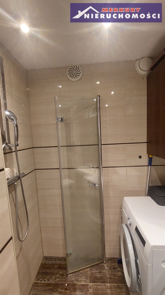 - w łazience nowa almatura łazienkowa (natrysk), glazura terakota.