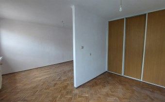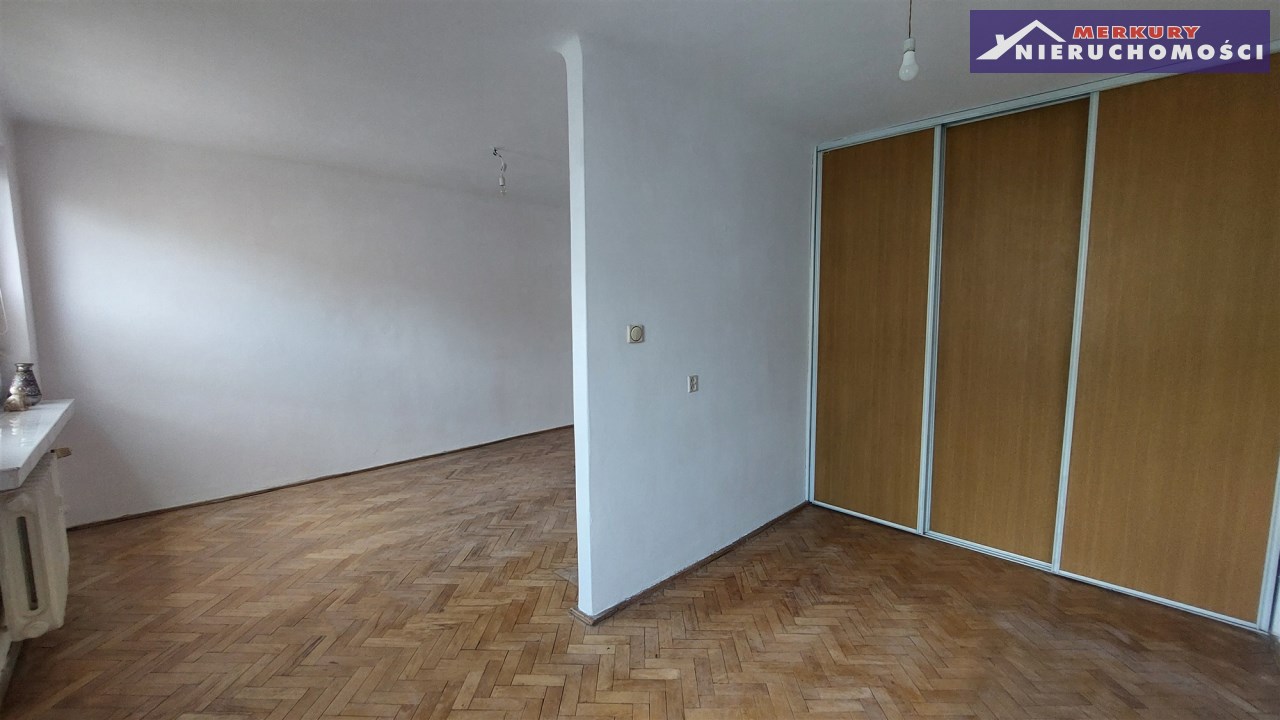 Mieszkanie dwupokojowe, a spokojnie możemy powiedzieć, że to trzy pokoje. W dużym pokoju ściana działowa dzieli powierzchnię pokoju z dwoma oknami, dając trzeci pokój. Na zdjęciach widać go z szafą wnękowa na całej ścianie, idealny pod sypialnie.