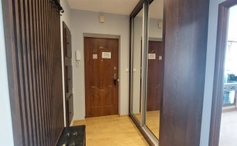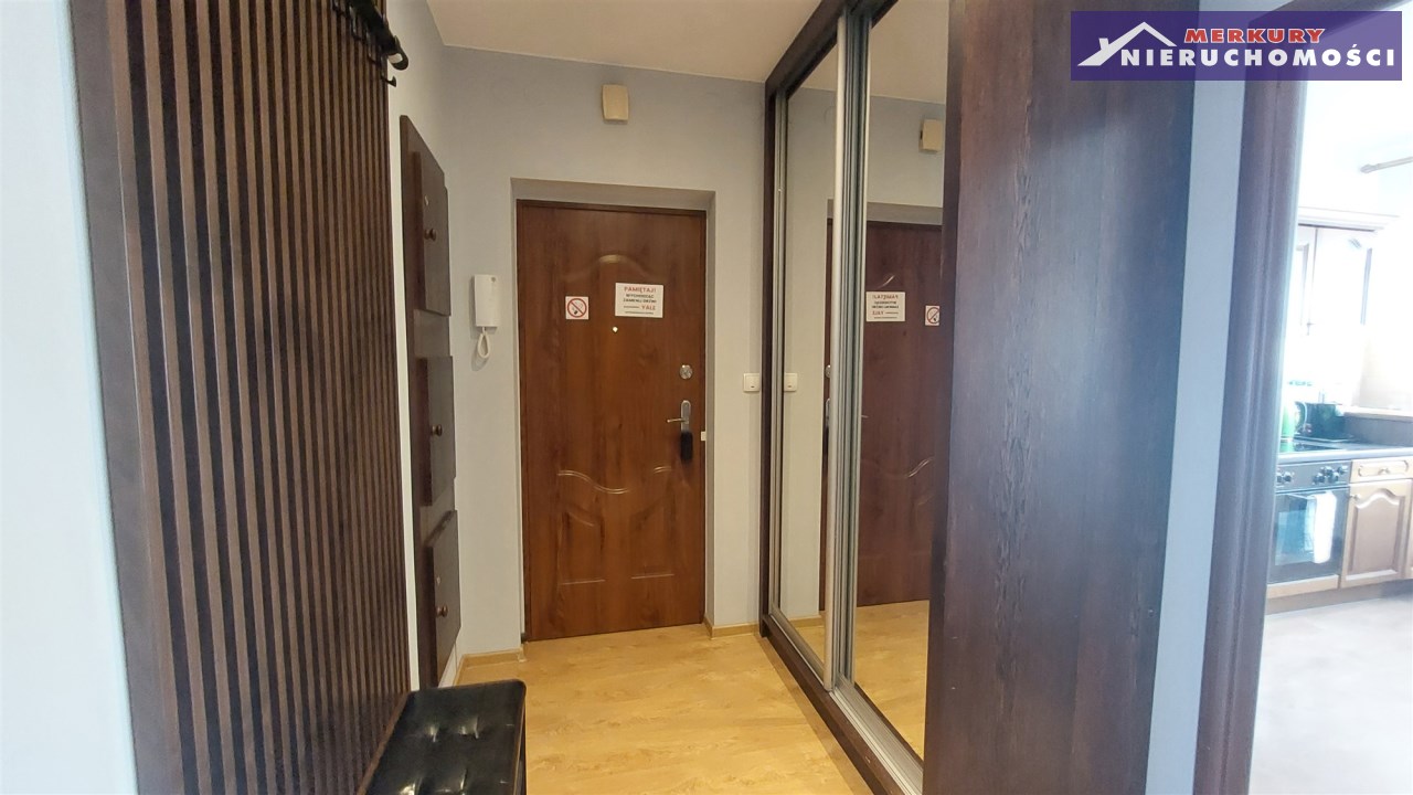- w przedpokoju szafa wnękowa z lustrem